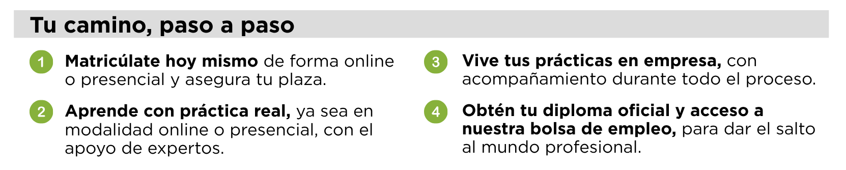 • Enfoque Práctico: Incluye prácticas en entornos reales para garantizar que los estudiantes estén preparados para el mercado laboral.