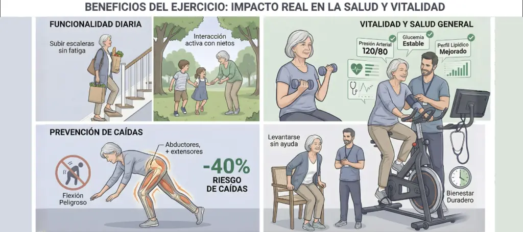 El trabajo de un profesional especializado no se mide solo en repeticiones, cargas o tablas de entrenamiento. Su impacto se ve en cosas tan concretas como que una persona pueda levantarse de una silla sin ayuda, subir escaleras con seguridad, cargar la compra o mantener un estilo de vida activo durante más años.